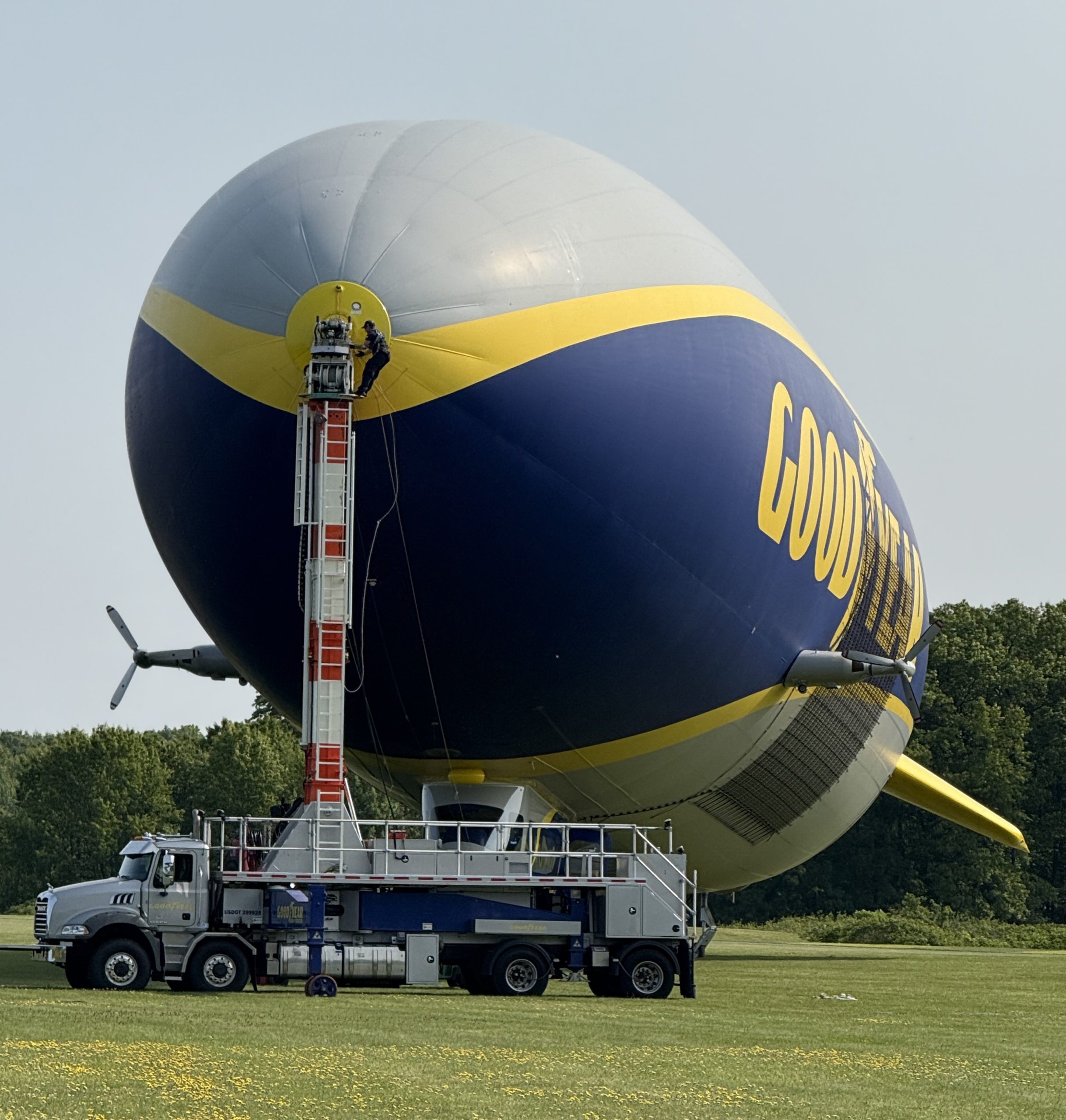 This enhanced range of motion permits a smaller ground crew to handle these airships during takeoffs and landings, and they each use a special truck that serves as a mobile anchor/tether point.
