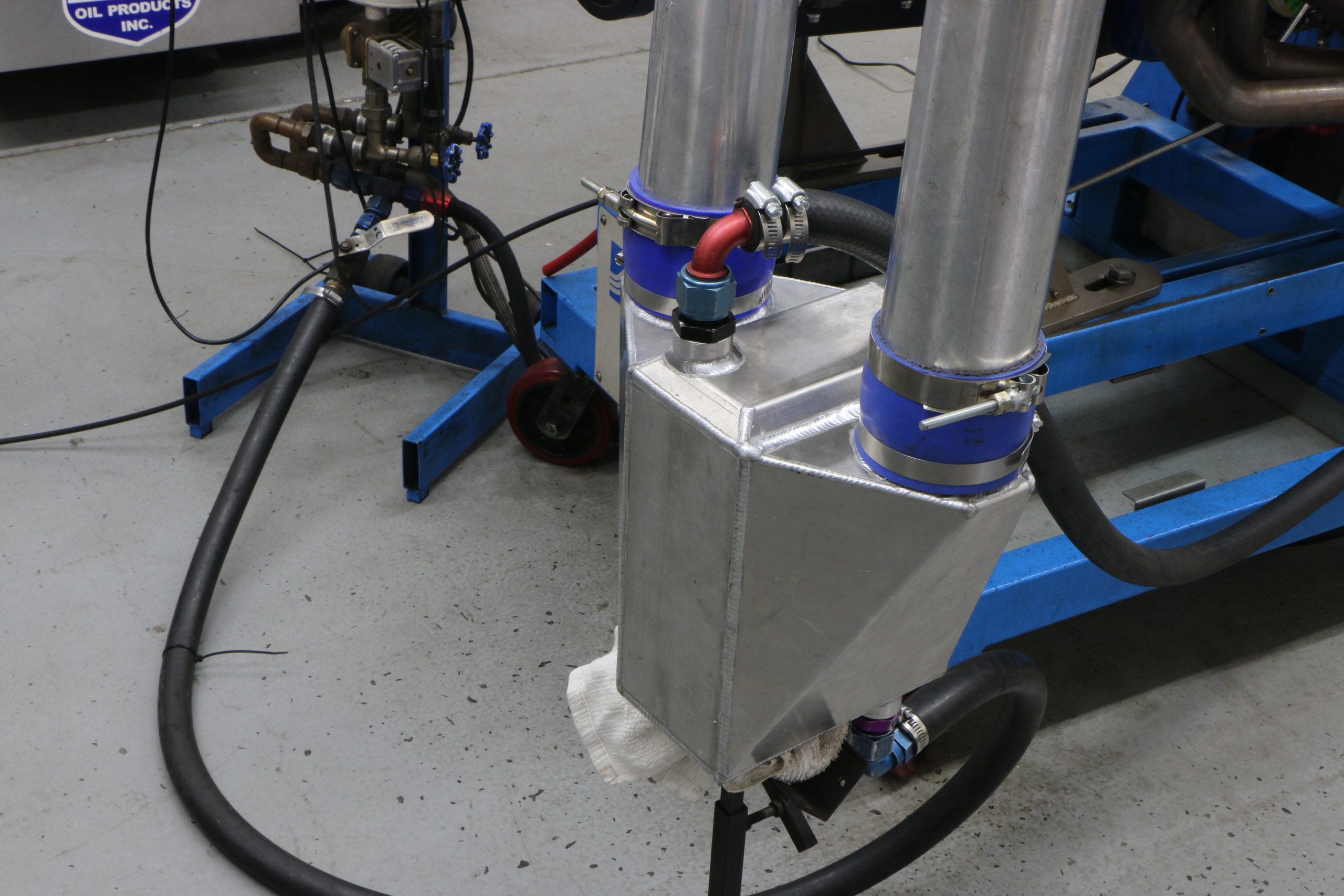 With the pulleys in place, and the blower ready to supply boost, we elected to install an air-to-water intercooler in the system. Given the elevated boost pressure required to reach our power goal, the intercooler was deemed a necessity.