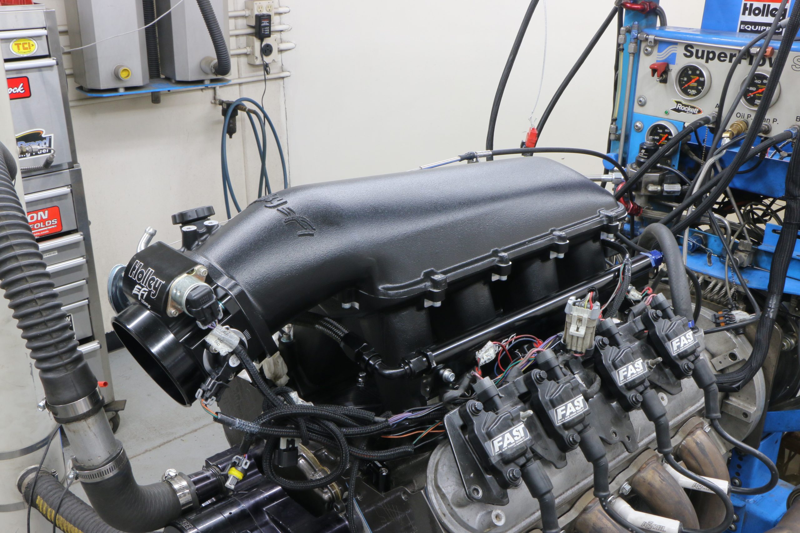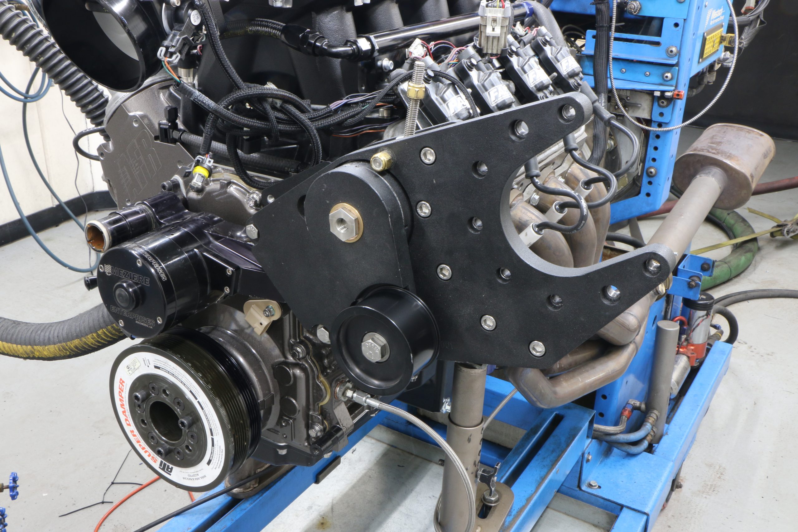 Boost for the 5.7L was supplied on the engine dyno by a ProCharger F1A-94 supercharger kit.