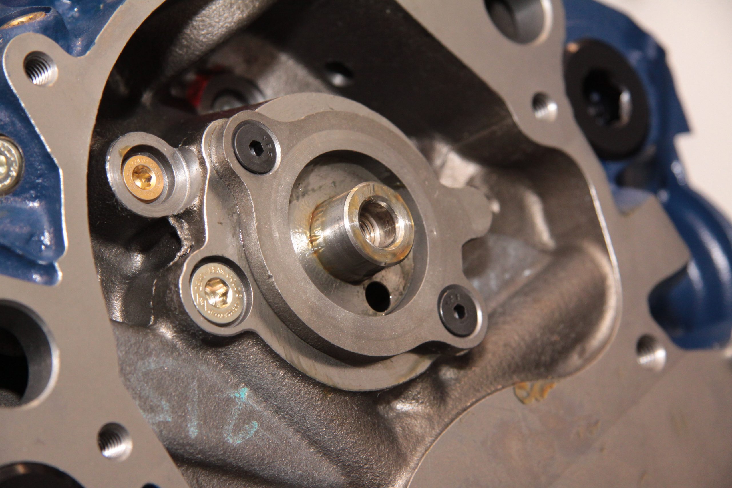 Every engine build brings its share of challenges. Jeff discovered clearance issues between the cam plate bolts and cam sprocket. He countersunk the bolt holes in the plate to provide the required clearance. (Image/Jim Smart)