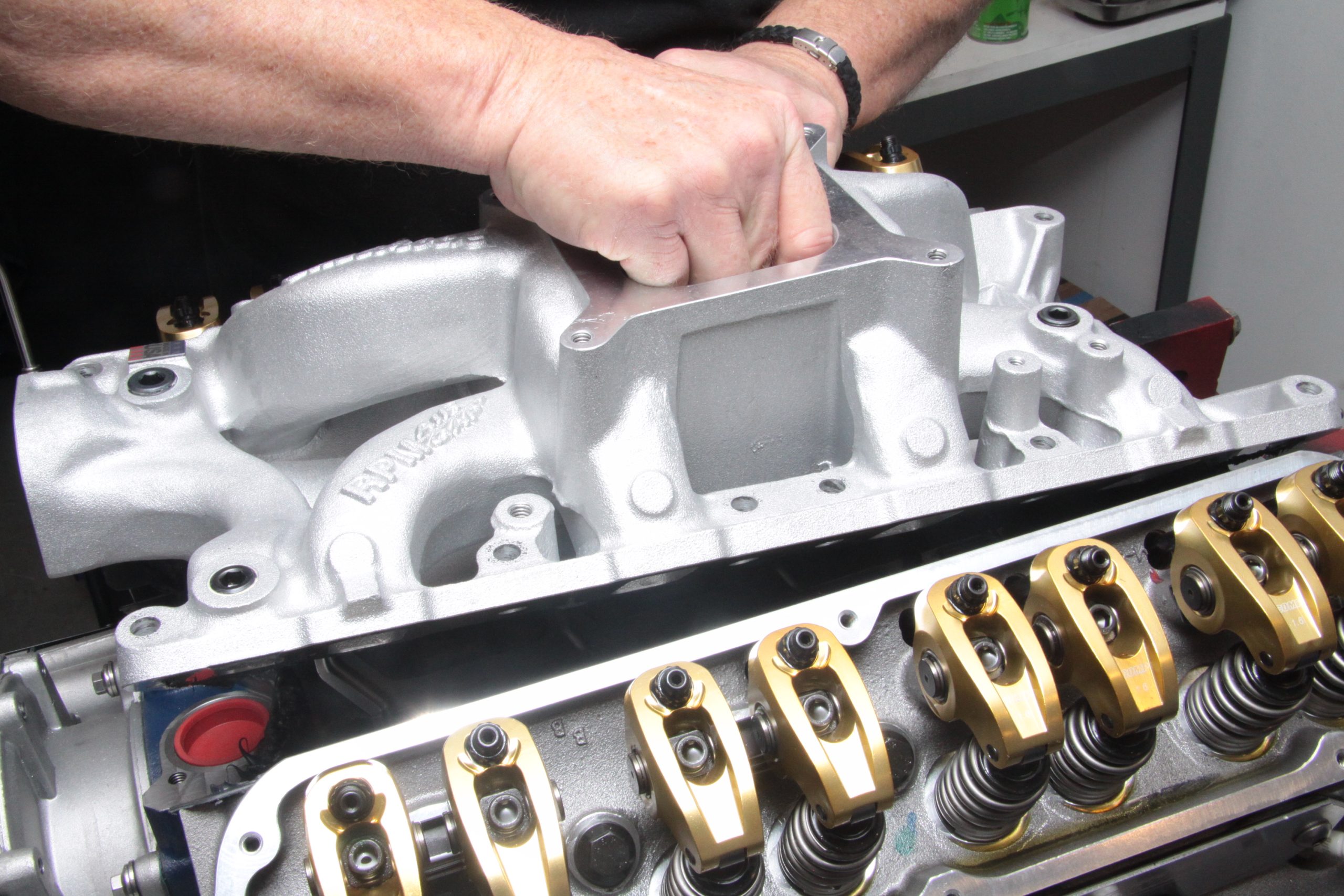 Edelbrock’s Performer RPM Air-Gap manifold is a great all-around intake manifold for street and track use. It combines the long, tall intake runners and generous plenum of the basic Performer RPM and added an open air space to separate the runners from the heat of the lifter valley cover. That cooling effect provides a denser air/fuel charge to help build more power. (Image/Jim Smart)