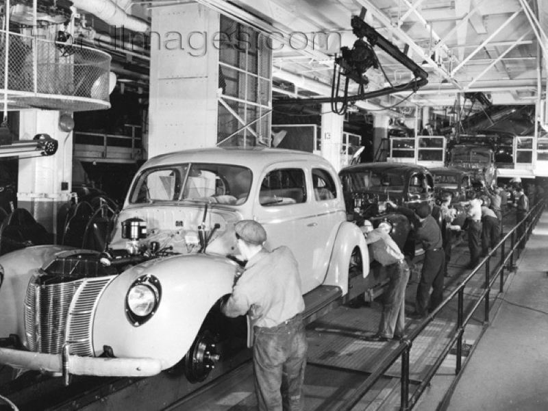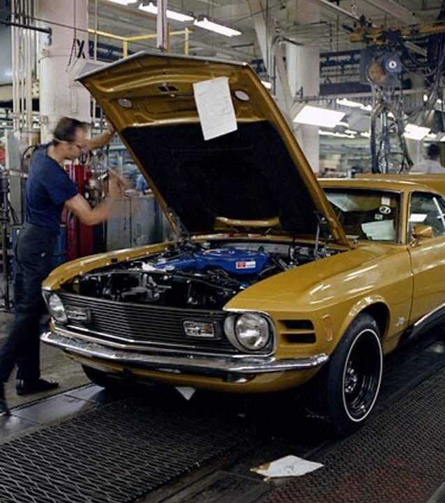 On May 10, 2004, more than a thousand people were in attendance to see the last Mustang roll off the Dearborn Assembly Plant line. The plant was the birthplace of some 6.7 million Mustangs beginning in January 1964. (Image/Jim Smart)Dearborn Assembly’s trim and chassis line in 1940. The plant was opened in 1918 to build Eagle Boat submarine chasers for the US Navy during World War I. It was the oldest Ford plant at the time of its closing. (Image/Jim Smart)1955 Thunderbirds were bucked and assembled at Dearborn along with 1955 Ford sedans and convertibles. (Image/Jim Smart)Dearborn’s body line was a dirty place in 1964 and 2004. Mustang bodies began with a platform consisting of three subassemblies followed by the body sides, gussets, and roof pans. There were robotic automatic welders in 1964, but not as many as there were in 2004. (Image/Jim Smart)Mustang assembly was labor intensive in 1964. A team of two assembly workers on each side secured front fenders and hoods, which were among the final steps of Mustang assembly. One worker held the fender and checked the fit while the other rattled bolts in place. (Image/Jim Smart)The end of the Dearborn line in 1967. It was affectionately known as the “dog house,” which was a huge exhaust ventilation hood installed in the early 1960s. Mercury Cougars were also assembled at Dearborn from 1967-73. The redesigned 1966 Falcon was assembled at Dearborn for one model year only. (Image/Jim Smart)Ford was targeted by the UAW with a lengthy two-month strike in September 1967. It crippled the company and halted production in all of Ford’s plants. An agreement was reached in November and folks went back to work. Note the layer of dust on vehicles that had been sitting idle for two months. (Image/Jim Smart)A Mach 1 in the final phases of assembly in 1970. The piece of paper hanging from the hood was known as the broadcast sheet, which detailed the vehicle makeup for workers to follow. Every subassembly got the broadcast sheet. (Image/Jim Smart)Dearborn also assembled the 1974-78 Mustang II. Although the car gets a lot of rotten tomatoes, customers liked them, buying a total of one million. (Image/Jim Smart)Fox Body Mustang production began at Dearborn late in 1978 with the ‘79 model. This 1986 Mustang body is getting tacked together with a robotic welder. (Image/Jim Smart)It has been said that Fox Body Mustang powertrains went in through the bottom of the car. This has never been true. Installation was more conventional through the top until the redesigned 1994-2004 SN95 Mustang, when powertrains were mounted on color-coordinated subframes and installed from underneath. (Image/Jim Smart)When I arrived at Dearborn Assembly for the Last Mustang build, I was escorted to the body line where some of the last Mustangs were taking shape. These were completed platforms that had not yet received vehicle identification numbers. The platform is actually three subassemblies fed into the main body line to become one integral unit. (Image/Jim Smart)The platforms received body buck tags, which were stapled with a pneumatic staple gun to the radiator support. This process is known as “bucking,” where a vehicle gets its vehicle identification number (VIN). This method goes back to late 1965 at Dearborn. Later on in production, Mustangs got a bar code and permanent VIN at the base of the windshield. (Image/Jim Smart)Mustang bodies were mostly robotically spot-welded together, but even in 2004 they were stick- and wire-feed welded as needed. (Image/Jim Smart)Completed Mustang bodies ready for an acid wash and E-coat. Here, workers wipe down the bodies, then attached chains to a conveyor that would haul them into the E-Coat anti-corrosion dip. Plastic hoods were first used on 1994 Mustangs. (Image/Jim Smart)After getting the green E-coat, bodies entered a drying oven where the coating cured and sound deadening was melted into place. (Image/Jim Smart)This is part of the paint plant where both Mustangs and F-150s were shuffled into order and returned to their respective plants. The Detroit Paint Plant was the only one where Ford trucks and cars would ever be together waiting to be painted. (Image/Jim Smart)This may look like a Carvana car dealership, but it was how Ford stored Mustang bodies awaiting final assembly. Units were shuffled and fed into the trim and chassis line. Each had been assigned a VIN, but not the rotation number on the crossmember. (Image/Jim Smart)Mustang bodies in Oxford White headed for the trim and chassis line for final assembly. They would receive their rotation number at this point. (Image/Jim Smart)This Mustang has its heating and air conditioning unit in place. Note the steering shaft and pedal assemblies. (Image/Jim Smart)These 3.8L V-6 engines and 4R75W transmissions were scheduled for the remaining Oxford White Mustang convertibles and coupes. This was the engine dress-up line where front drives and other accessories were installed along with the exhaust manifolds. (Image/Jim Smart)I was escorted to the Mustang storage tower for a look at the Last Mustang. It was a GT convertible body clad in Redfire Clearcoat paint, ready for its journey to the trim and chassis line for completion. (Image/Jim Smart)Ford set aside two 4.6L V8 engines for the Last Mustang. One was a spare in case the primary engine didn’t function. (Image/Jim Smart)A final high-five for these workers at their station during the last Dearborn Mustang’s final assembly phase. Dearborn plant associates moved on to other plants, with the truck plant next door taking many of them. (Image/Jim Smart)The Last Dearborn Mustang—VIN #242598, Rotation Number #2945. It remains in the care of Ford Motor Company as a historic vehicle that signaled the end of almost a century of manufacturing at Dearborn Assembly. (Image/Jim Smart)