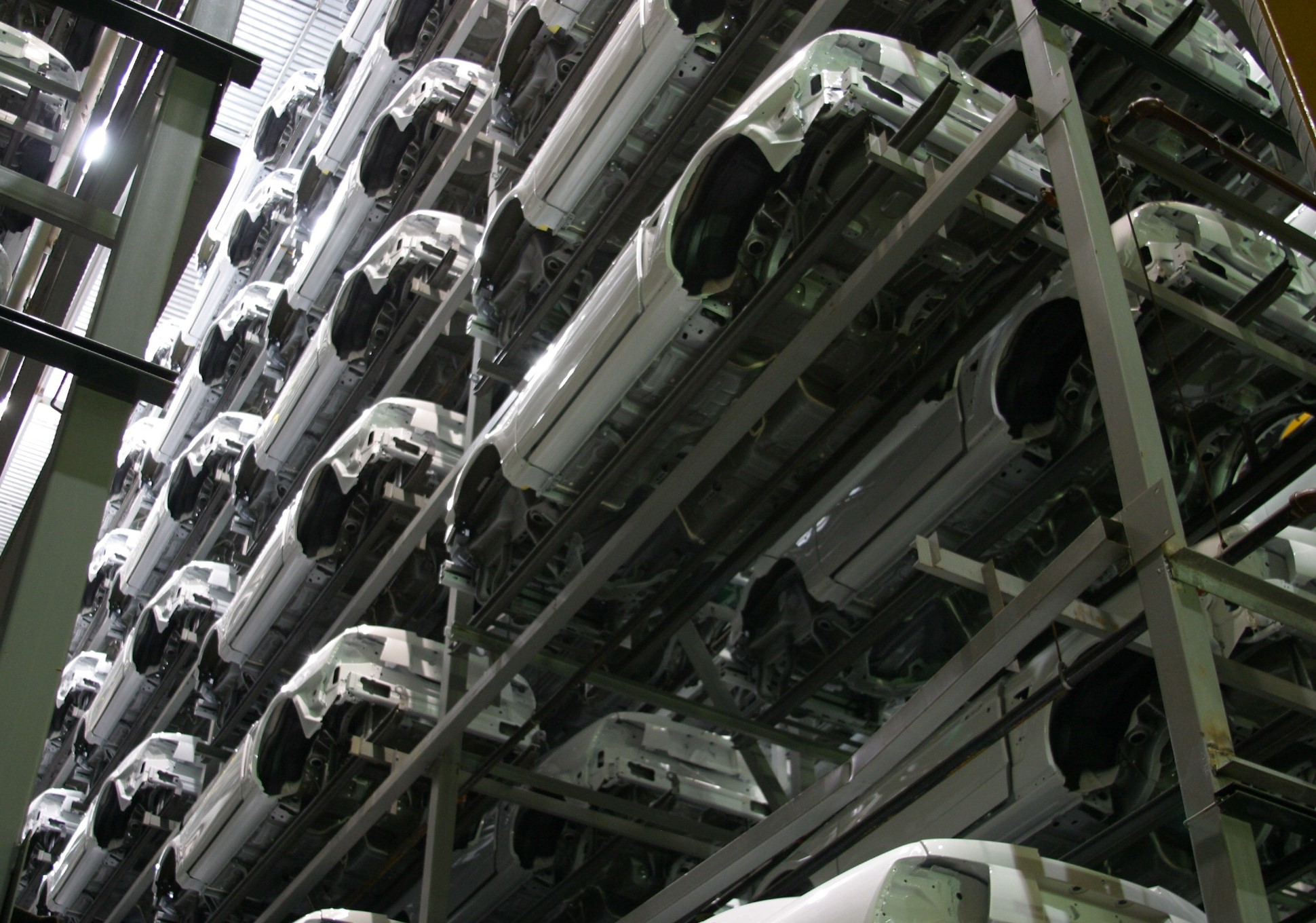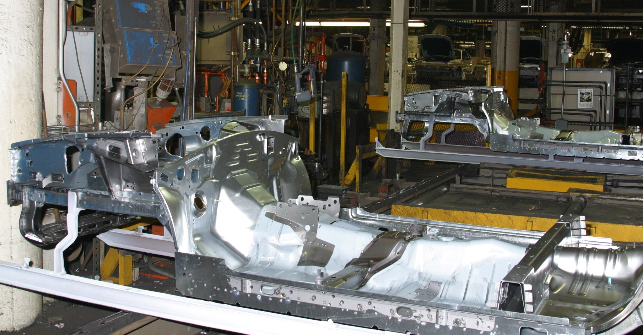 Another subassembly line built the body sides, which consisted of quarter-panels, pillars, and wheelhouses. Body sides were among the first subassemblies attached to the platform. They were retained with fold-over “toy tabs,” which was plant slang for metal tabs that are bent over to hold subassemblies loosely together as they traveled to the human and robot welders for final assembly.