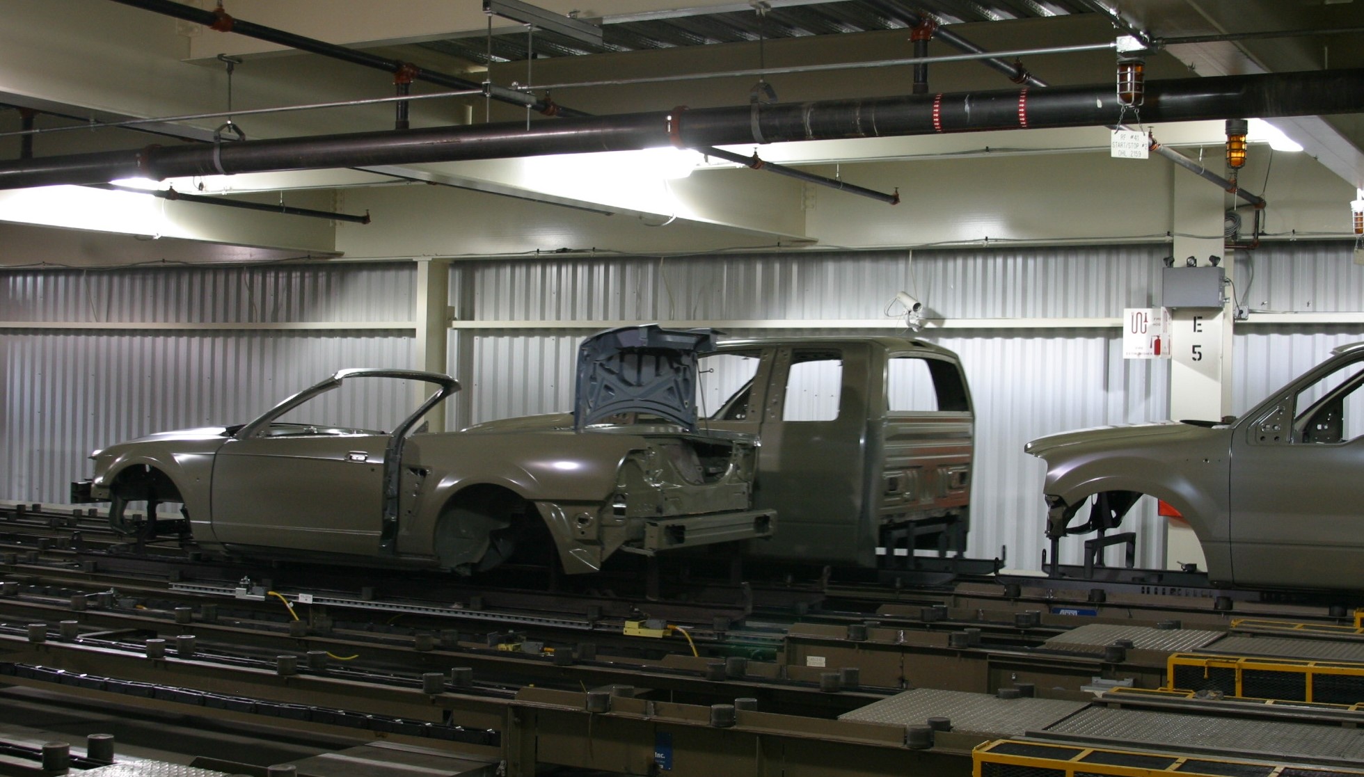 For decades, the Dearborn Assembly Plant had its own paint line. The greatest challenge with this was paint contamination due to the fallout from the nearby body line. In 2000, Ford opened the new Dearborn Paint Plant to improve Mustang body finish. The new Dearborn Truck Plant, which opened in the spring of 2004, also benefited from the new high-tech finishing plant. During this visit, both the Mustang and the 2004 F-150 trucks were painted on the same line, then fed into their respective assembly lines.