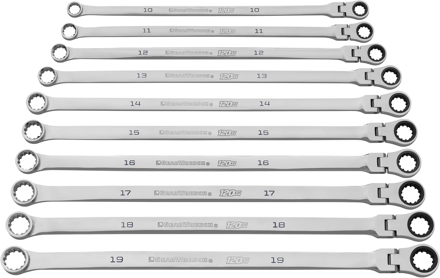 An interesting take on ratcheting box end wrenches is this Gear Wrench Flex Head Wrench Set. The metric wrenches have a conventional box end and a ratcheting box end with a flex head to reach those hard to get at fasteners. The wrenches have beams that are 25% longer than standard, which means you can place more torque on the fastener. (Image/Summit Racing)
