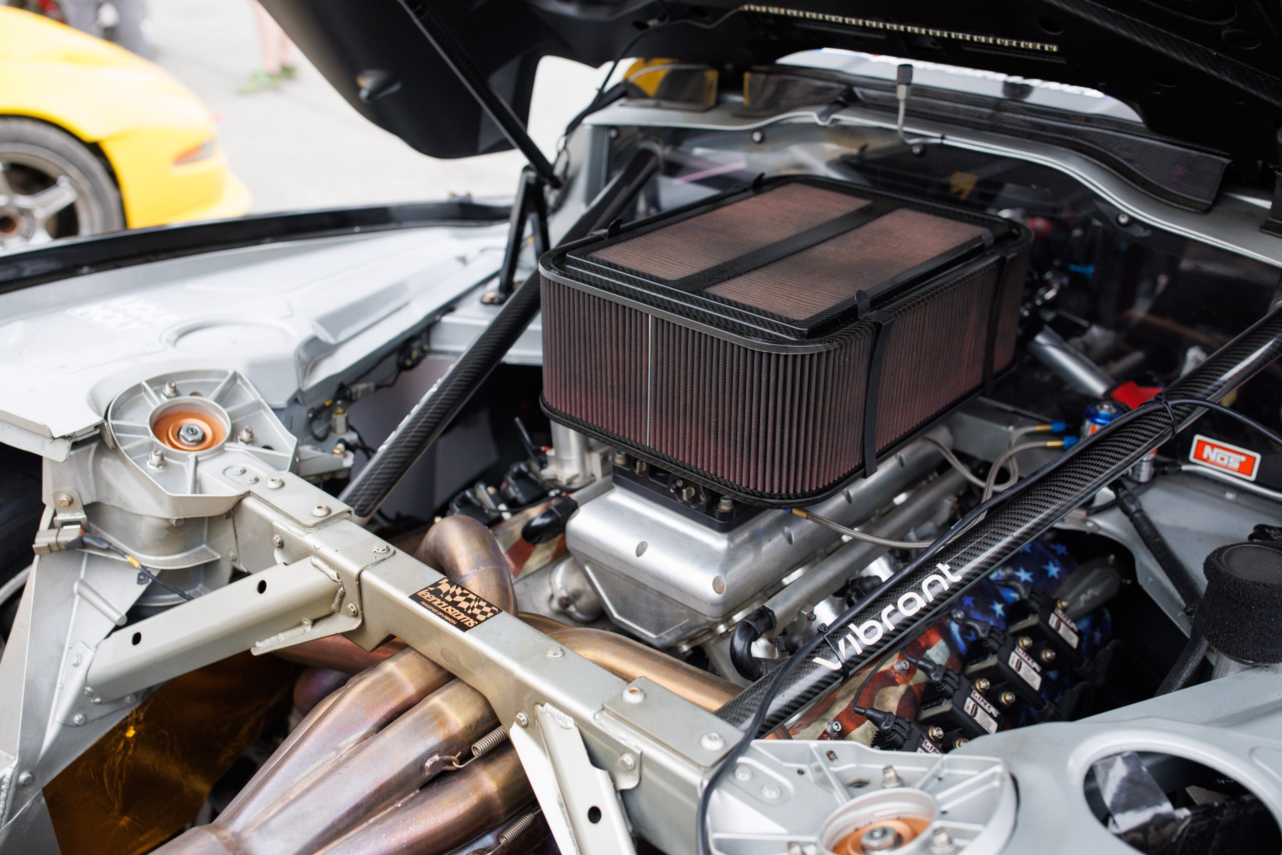 A wild set of Borla rotary-fire 8-to-1 headers, built specifically for this car, deliver a sound reminiscent of a Formula 1 car while perfectly timing the exhaust pulses for optimal scavenging.