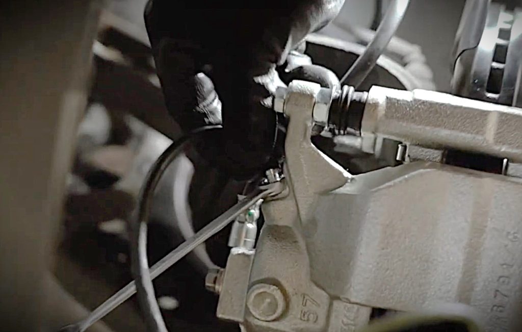 man fitting hose onto a brake bleeder nipple