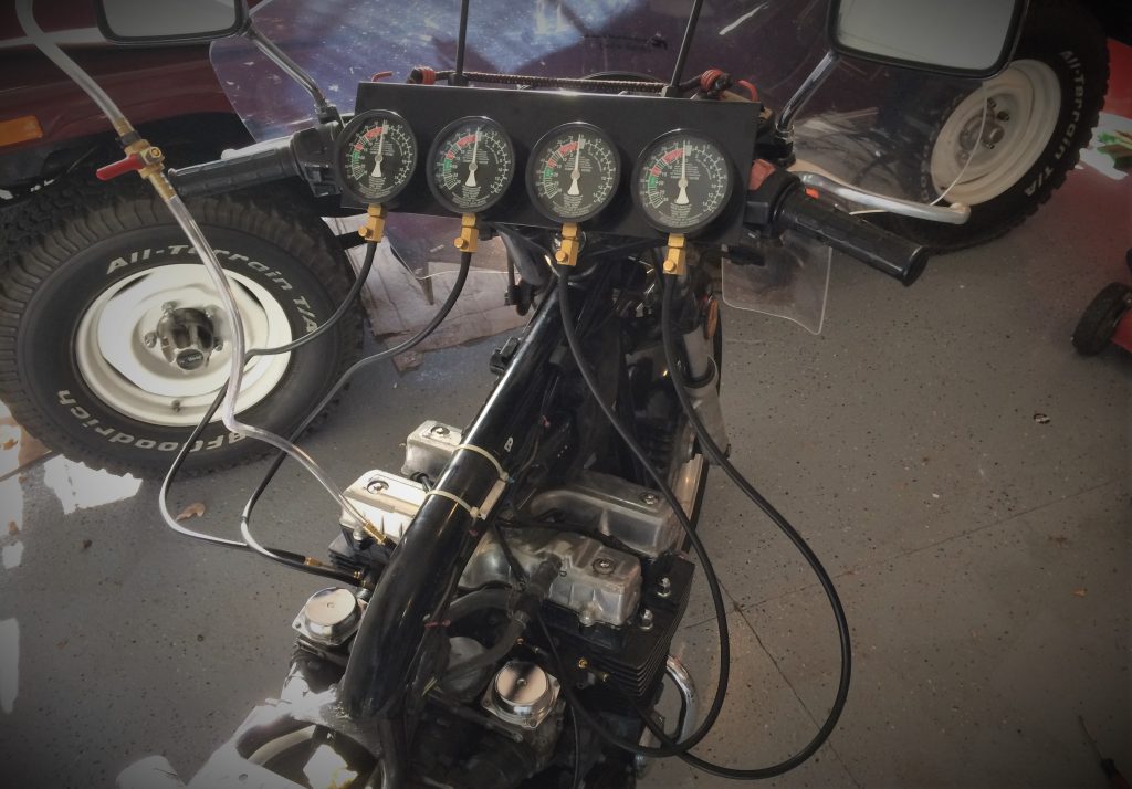 motorcycle with cab vacuum sync tool installed